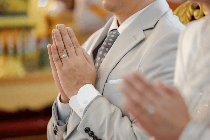 - ชุดไทยสำหรับพิธีสงฆ์: การเลือกชุดไทยที่เหมาะสมสำคัญมาก เราแนะนำให้ปรึกษาบริการ Bangkok wedding dress rental เพื่อเลือกชุดไทยบรมพิมานหรือชุดไทยศิวาลัยที่ดูสำรวมแต่ยังคงความหรูหรา