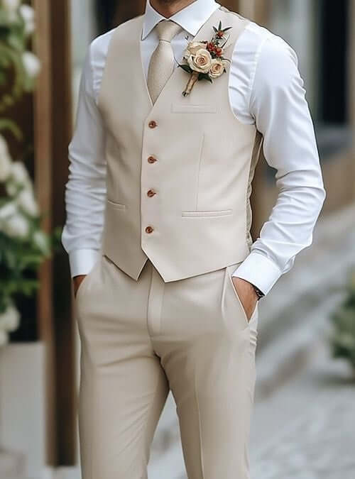- Three-Piece Suit สูทที่มีเสื้อกั๊ก (Vast/Waistcoat) เสื้อด้าสใน ช่วยให้ดูเนี๊บบ และภูมิฐาน และ เมื่อถึง After party ก็สามารถถอดเสื้อด้านนอก ก็ยังดูโดดเด่น