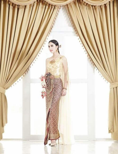 เป็นเจ้าสาวผิวคล้ำก็ไม่ต้องกังวลใจไปนะคะเพราะถ้าเลือก ชุดไทยได้ถูกกับสีผิวก็ทำให้คุณเป็นเจ้าสาวที่สวยไม่แพ้เจ้าสาวผิวสีอื่น ๆ เลยนะคะ โดยการเลือกชุดเจ้าสาว ชุดหมั้นไทยสำหรับเจ้าสาวผิวคล้ำควรเลือกชุดไทยที่มีสีไม่อ่อนหรือเข้มจนเกินไปโดยสีที่เหมาะได้แก่ สีครีม สีเงิน หรือสีโอรสอ่อนเพราะสีเหล่านี้จะช่วยขับสีผิวของเจ้าสาวให้ดูสว่างยิ่งขึ้นนั่นเอง